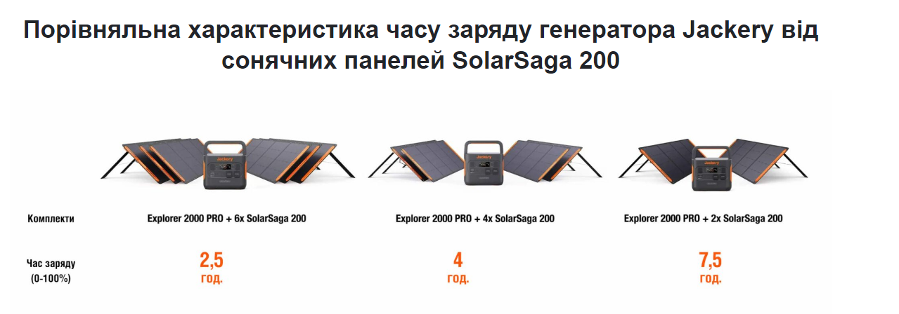 | Температурний діапазон експлуатації, °C | від -10 до +40 (Explorer 2000Pro) від -10 до +65 (SolarSaga 200W) |