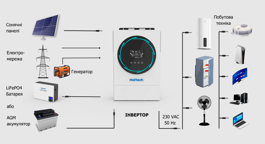 Гібридний інвертор Haitech SUNPOLO 6 KW/48V: Ефективне поєднання сонячної енергії та зарядного пристрою