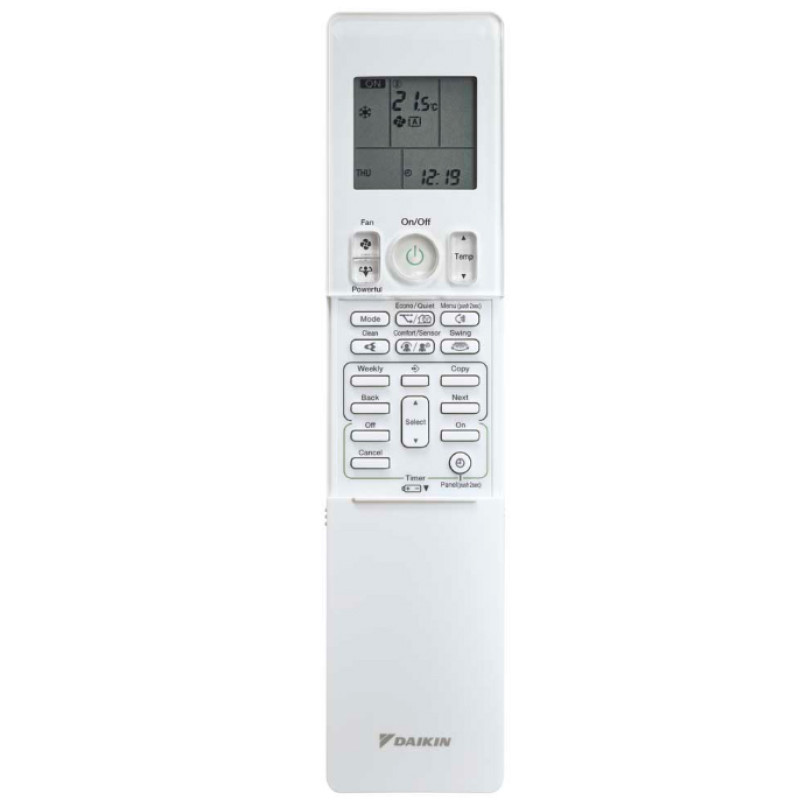 | Функції | Wi-Fi управління Інтелектуальний термодатчик Режим «Еcono» Самоочищення Авторестарт Режим зниження вологості Функція «3D повітряний потік» Тижневий таймер Інфрачервоний пульт дистанційного керування Самодіагностика Дротовий пульт дистанційного керування Програма Daikin Residential Controller |