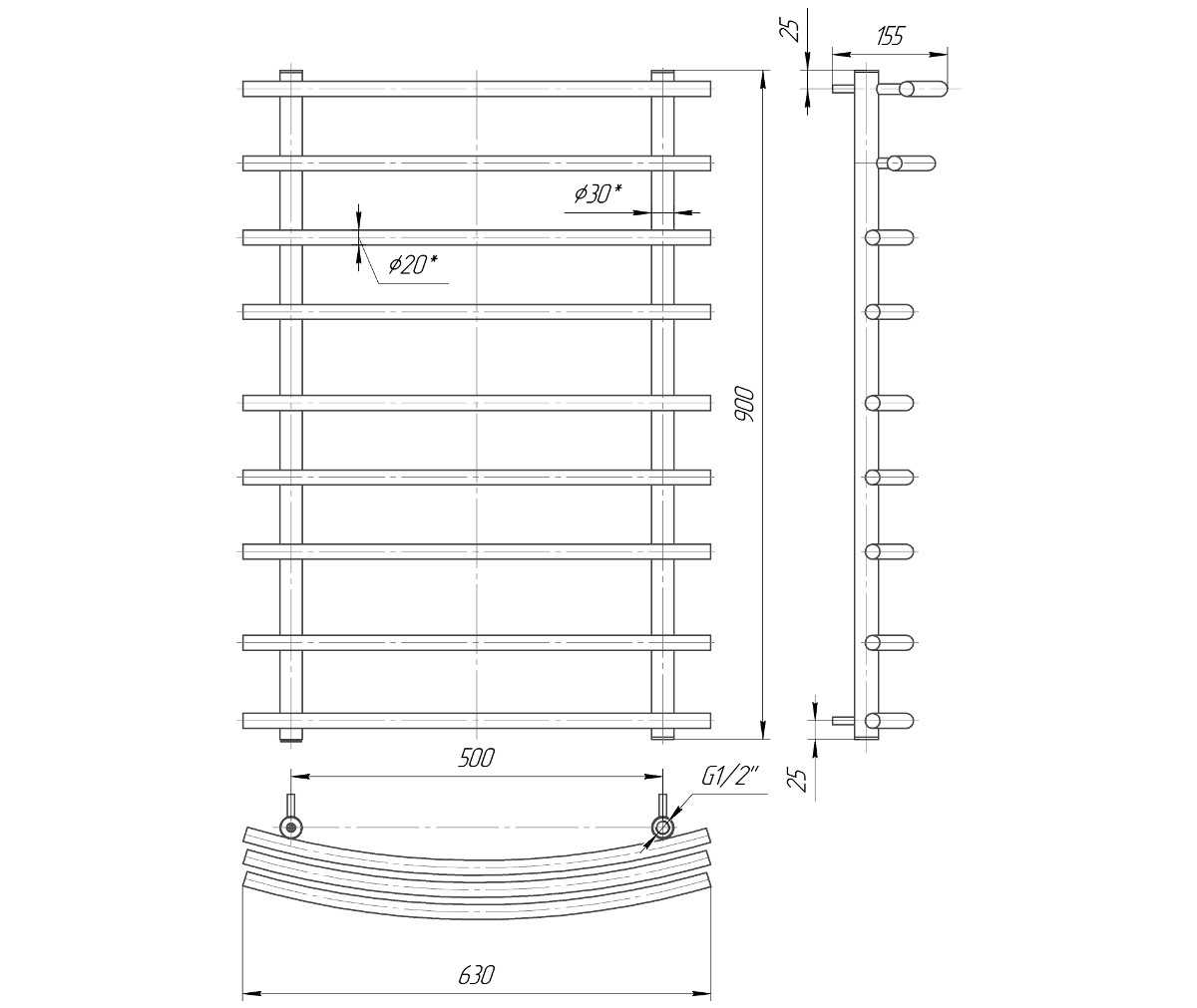 Водяной полотенцесушитель Mario Практик Марио 900х630/500