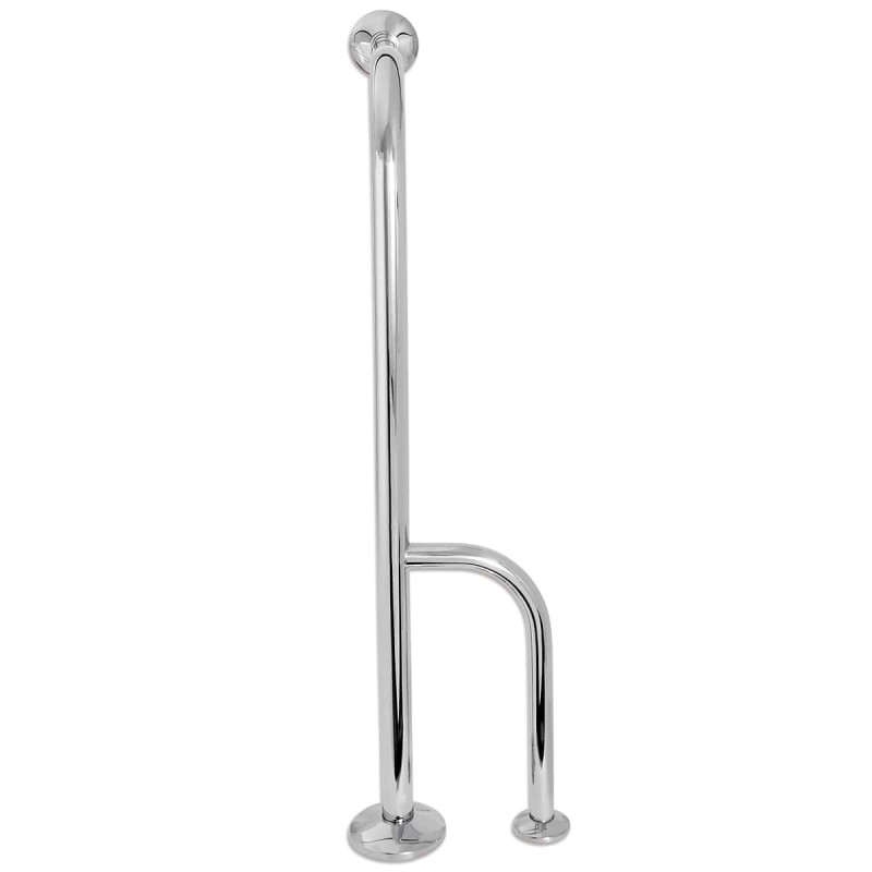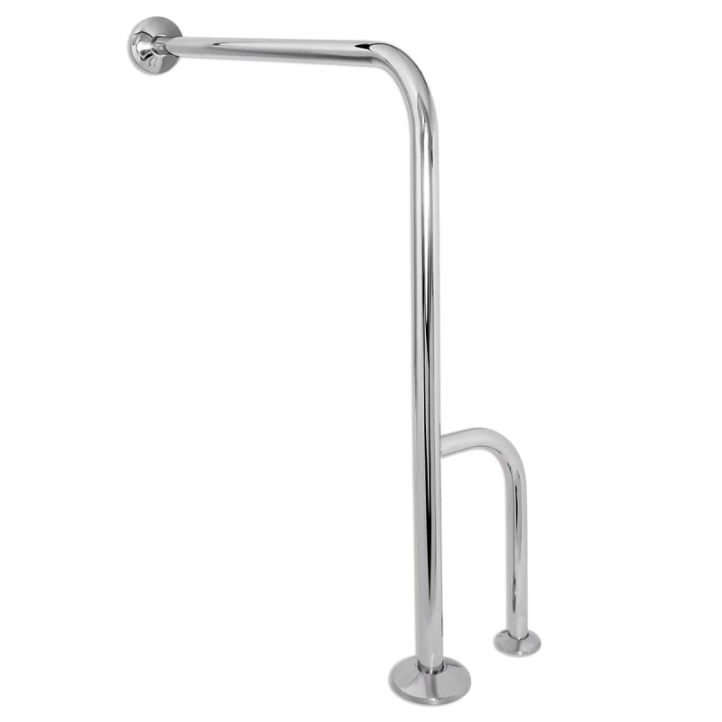 Кріплення поручня здійснюється підлоговим способом, що дозволяє встановити його у зручному місці з урахуванням потреб користувачів. Це забезпечує надійне утримання та підтримку під час руху. Поручень виконаний в елегантному хромованому виконанні, що надає йому стильного вигляду і дозволяє гармонійно вписатися в різні інтер'єри. Висота поручня 800 мм забезпечує зручне використання для різноманітних користувачів. З упором справа цей поручень стає ще зручнішим і функціональнішим. Він сприяє стабільності та впевненості при пересуванні, забезпечуючи додаткову точку опори.