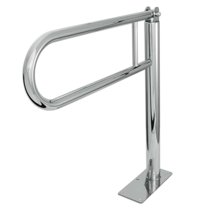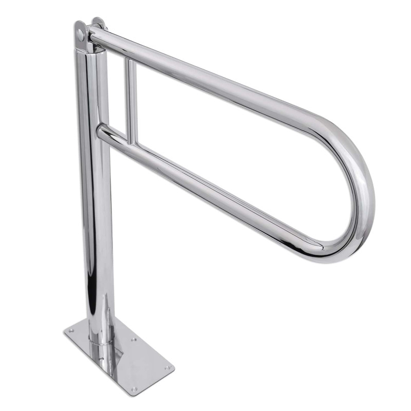 Відкидна конструкція дозволяє легко переміщати поручень з горизонтального положення вертикальне і назад. Ця додаткова зручність робить його використання максимально адаптивним до потреб користувачів. Поручень кріпиться до поверхні підлоги, забезпечуючи стабільність і надійність при використанні. Монтаж досить простий, яке стійкість забезпечує довгий термін служби.