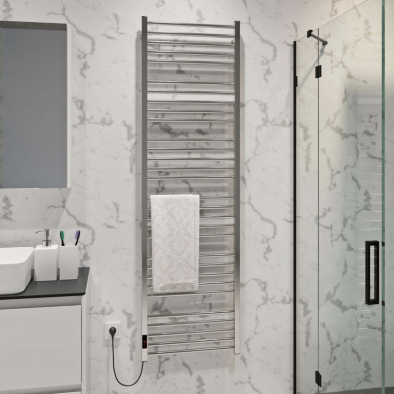 Однак, головна перевага цієї моделі - це наявність регулятора температури з таймером прямо на сушарці для рушників. Це дозволяє вам легко налаштувати бажану температуру та час роботи відповідно до ваших уподобань, забезпечуючи максимальний комфорт та енергозбереження. Розміщення шнура зліва робить підключення до електромережі зручним і легким, а тип кріплення у вигляді стаціонарної конструкції забезпечує надійну фіксацію сушарки для рушників на стіні, що не вимагає постійного підстроювання.