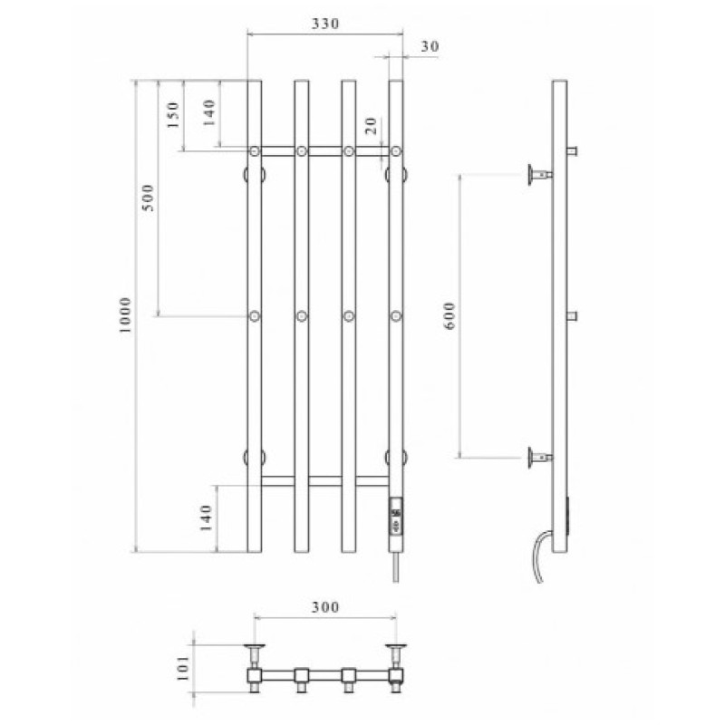 Електрична рушникосушарка Deffi Split П4 300x1000 Е праве підключення