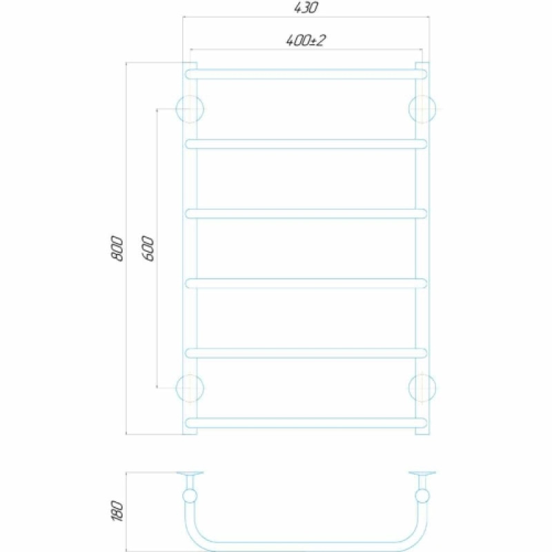 - Габарити та дизайн: з висотою 800 мм, шириною 400 мм і глибиною 180 мм, ця рушникосушарка ідеально підходить для розміщення у ванній кімнаті. Її компактні розміри та елегантний дизайн дозволяють легко інтегрувати його у будь-який інтер'єр.