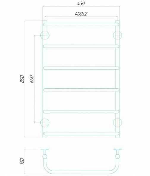 - Габарити та дизайн: рушникосушаркав має висоту 800 мм, ширину 400 мм і глибину 180 мм, що робить її компактною та зручною для встановлення у ванній кімнаті. Її стильний дизайн легко інтегрується в інтер'єр ванної.