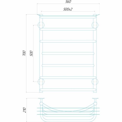 З висотою 700 мм і шириною 500 мм, ця рушникосушарка має компактні розміри, що дозволяє легко інтегрувати її в різні дизайни ванних кімнат. З поличкою для зручного розміщення рушників вона стане не лише функціональним елементом, а й стильним аксесуаром. Регулятор температури, встановлений на вилці шнура, надає можливість точного налаштування тепла відповідно до ваших уподобань.Потужність 100 Вт забезпечує швидкий і ефективний процес сушіння, роблячи ваші рушники завжди теплими і приємними на дотик. Тип кріплення – стаціонарний, що гарантує надійне закріплення на стіні. Перемички, рівномірно розподілені по поверхні, створюють достатньо місця для сушіння кількох рушників одночасно. З глибиною 210 мм, цей сушка для рушників легко вписується в простір ванної кімнати, надаючи комфорт і функціональність.