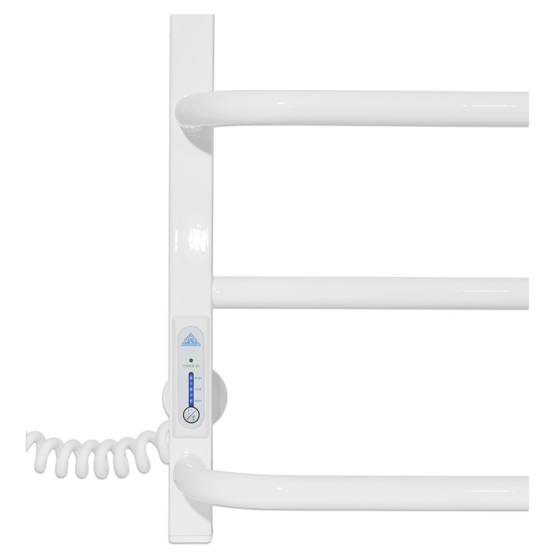 - Розміщення шнура: шнур для підключення до джерела живлення зручно розміщений з лівого боку рушникосушарки, що забезпечує зручність при встановленні та підключенні.
