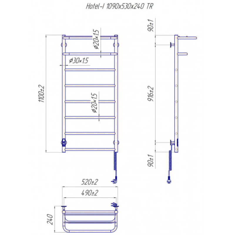 Електрична сушка для рушників Mario Лайт Hotel-I 1090х530/240 TR К