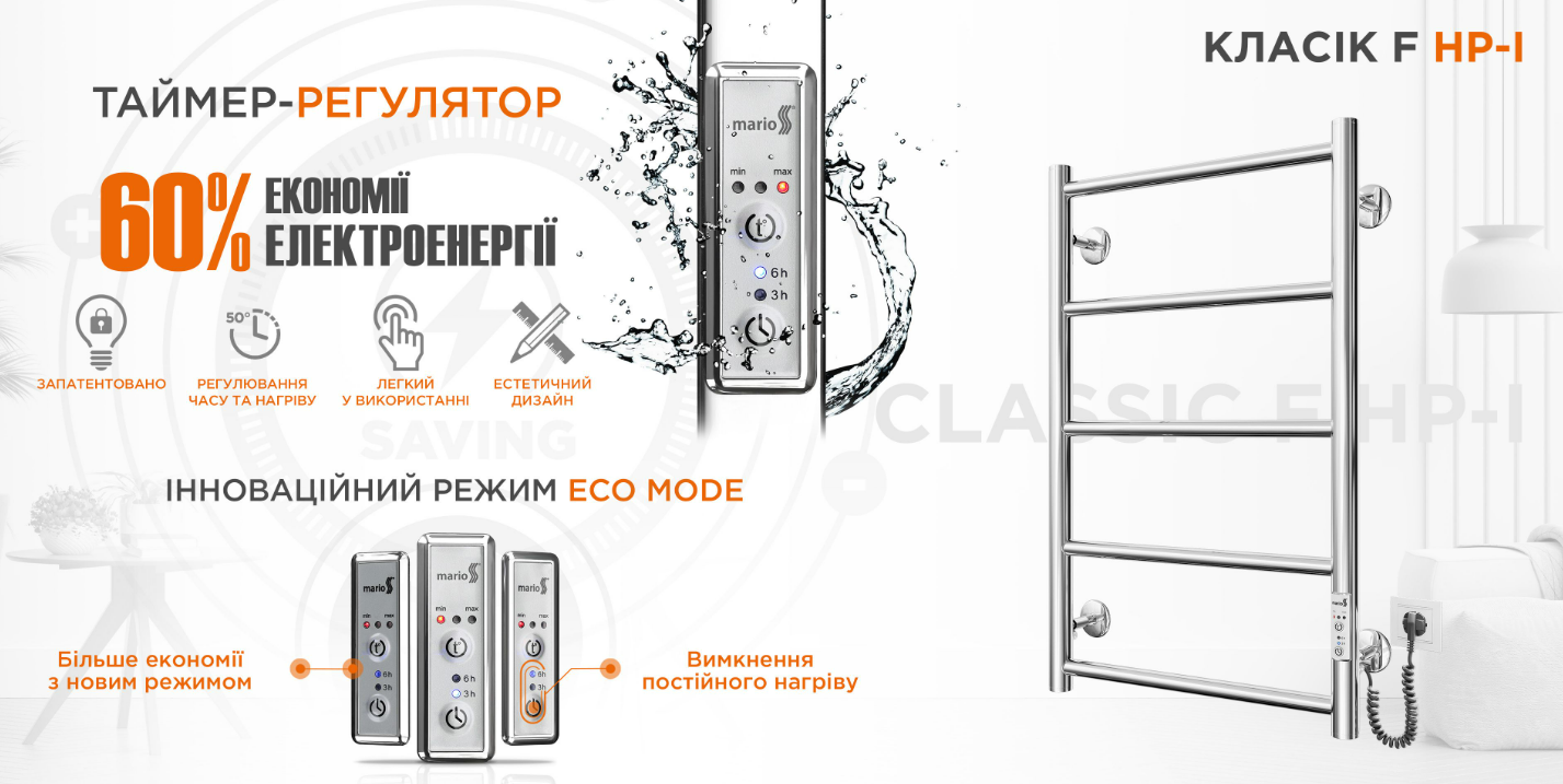 Електрорушникосушка Класик F HP-І 1090х430/75 TR характеризується мінімальною глибиною, що дозволяє їй економити цінний простір у ванній кімнаті. Також наявність таймера надає можливість інтелектуального керування сушаркою, з урахуванням потреб та режиму використання.