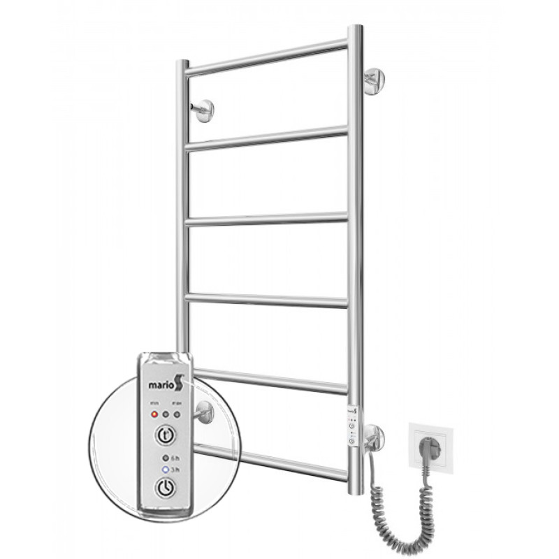 Розміщення універсального шнура забезпечує зручність при монтажі, а рівномірне розміщення перемичок сприяє оптимальному використанню поверхні для підвішування рушників. Максимальна температура нагрівання становить 55 °C, що забезпечує швидке та ефективне висихання рушників. Вбудований таймер на 3 та 6 годин роботи сприяє економії електроенергії, надаючи користувачеві гнучкість в керуванні часом роботи пристрою.
