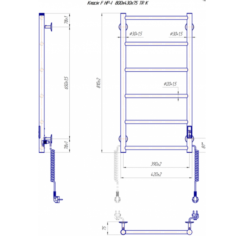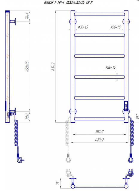 Електрична сушка для рушників Mario Лайт Класік F HP-I 800х430/75 TR К