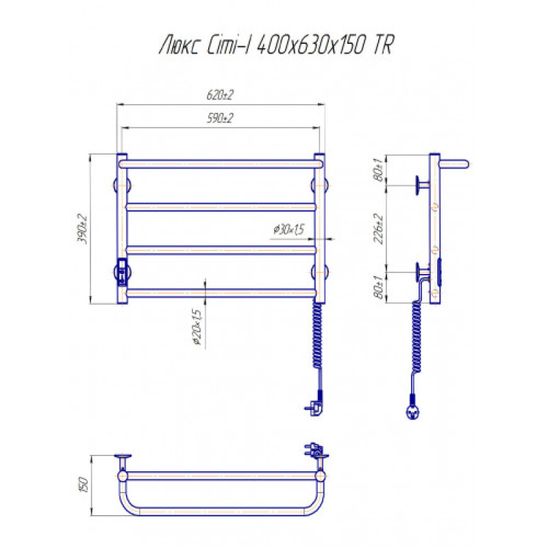 Основні характеристики рушникосушки Mario Лайт Люкс Сіті-І 400х630/150 TR К
