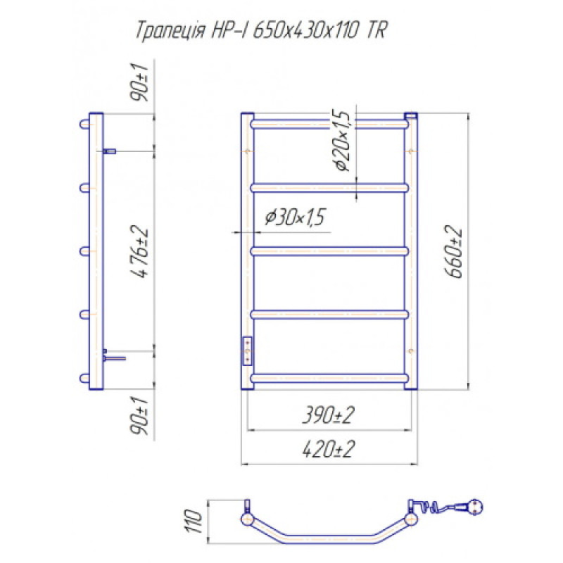 Електрична сушка для рушників Mario Лайт Трапеція НР-I 650х430/110 TR К