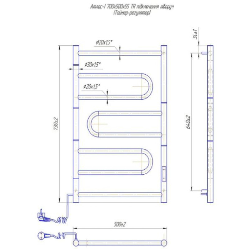Електрична сушка для рушників Mario Поворотна Атлас-I 700х500/55 TR