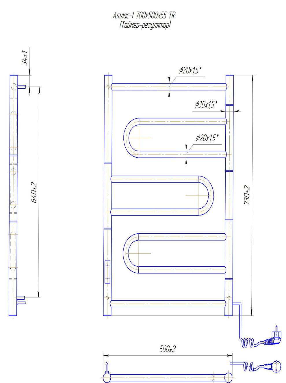 Основні характеристики рушникосушки Mario Поворотна Атлас-I 700х500/55 TR л/п