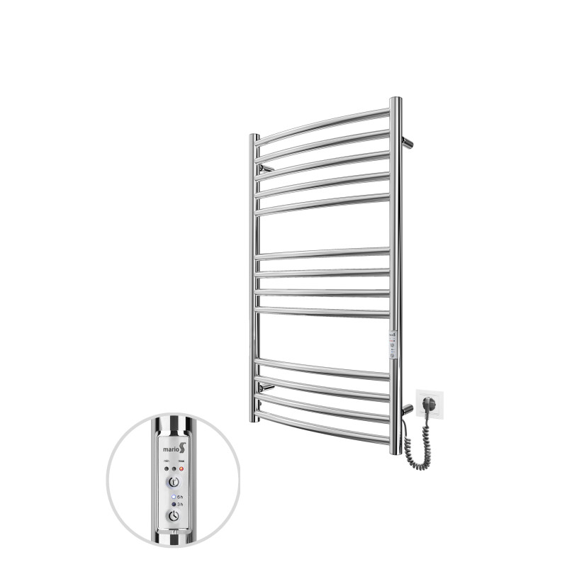 Електросушарка для рушників Mario Преміум Фенікс-І 830х500/100 TR. Обладнана таймером-регулятором, завдяки якому можна встановити час нагрівання на 3 і 6 годин або постійне нагрівання та конектором для універсального (праворуч/ліворуч) підключення в розетку. Сумісна з комплектом прихованого підключення.