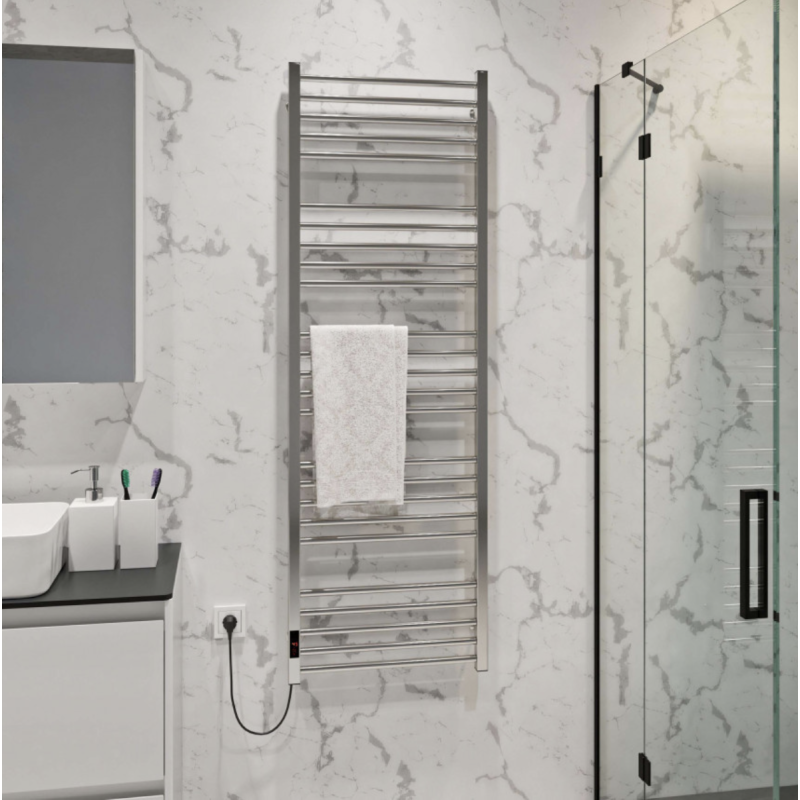 Виготовлена з нержавіючої сталі марки AISI304, вона має високу стійкість до корозії та довговічність, що особливо важливо в умовах підвищеної вологості у ванній кімнаті. Кількість перемичок на сушарці для рушників становить 25, з рівномірним розміщенням по 5 в кожній секції. Це забезпечує ефективний розподіл тепла та забезпечує можливість розміщення рушників різних розмірів та форм, підтримуючи їх сухість та теплоту. Потужність пристрою становить 388 Вт, що забезпечує швидке нагрівання та підтримання оптимальної температури рушників.