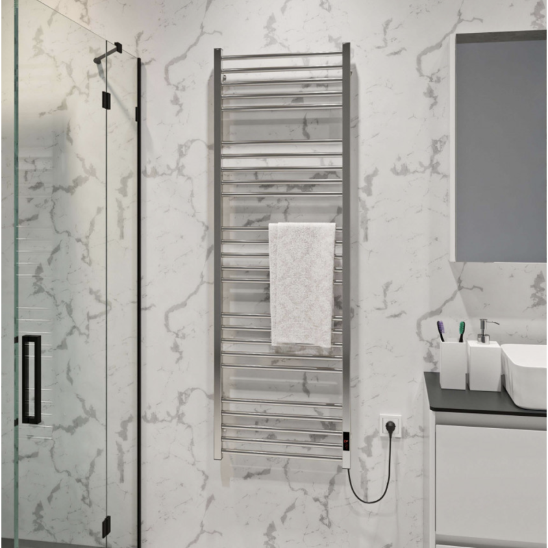 Особливістю цієї моделі є наявність терморегулятора з таймером, що дозволяє точно налаштовувати і контролювати температуру сушки для рушників і час її роботи. Терморегулятор забезпечує економічне споживання енергії, дозволяючи використовувати сушка для рушників тільки в потрібні моменти. Шнур живлення у даної моделі розташований праворуч, що зручно під час встановлення та підключення пристрою до електромережі. Це дозволяє легко прокладати шнур вздовж стіни або приховано у коробі, зберігаючи естетику та безпеку використання. Встановлення та експлуатація електричної рушникосушки Deffi Lima L 160.50.25 ER прості і не вимагають спеціальних навичок. Вонв ідеально підходить як для домашнього використання, так і для комерційних об'єктів, де важлива ефективність та зручність.