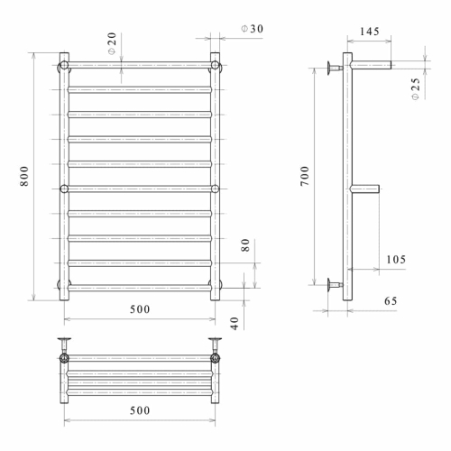Електрична рушникосушарка Deffi Терма Плюс П10 500x800 Е праве підключення
