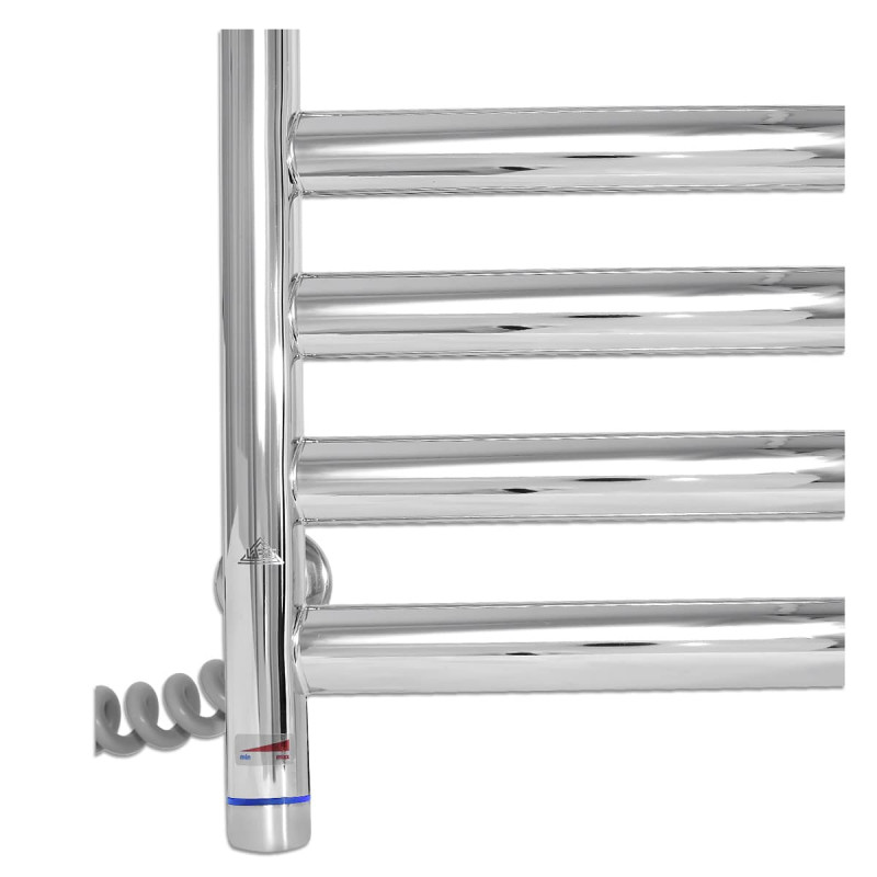 - Лівостороннє розміщення шнура: підключення до електричної мережі здійснюється з лівого боку, що забезпечує зручність та гармонійне розміщення рушникосушарки.