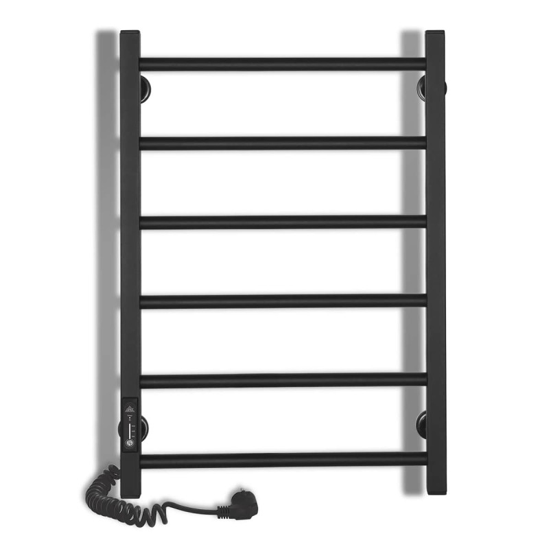 Регулятор температури на стійці програмується, що дозволяє точно налаштувати бажану температуру сушіння рушників. Ви зможете вибрати оптимальний режим сушіння, щоб рушники швидко висихали, забезпечуючи вам комфорт та зручність у використанні. Розміщення шнура ліворуч робить установку і підключення рушникосушарки простим і естетичним. Дріт не заважатиме візуальному сприйняттю пристрою та дозволить вам насолоджуватися його функціональністю без помітних елементів. Форма драбинки робить цю сушарку для рушників елегантною та зручною у використанні. Ви зможете легко повісити рушники на різні полиці, забезпечуючи їх швидке та рівномірне сушіння.