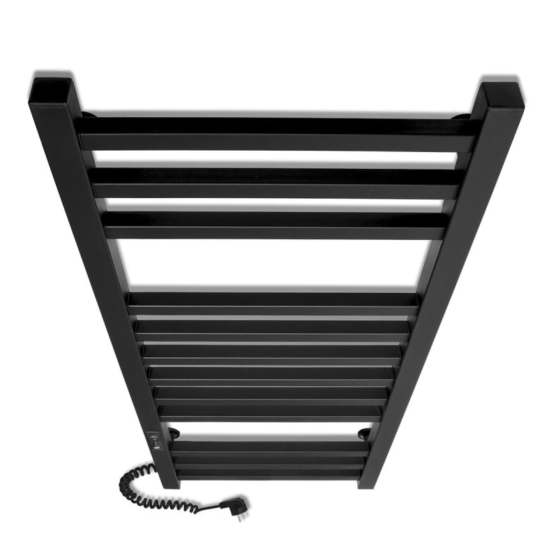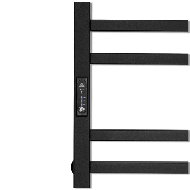 Регулятор температури цієї моделі знаходиться на стійці і є програмованим. Це дозволяє вам налаштувати зручну температуру сушіння та обігріву рушників відповідно до ваших потреб та уподобань. Ви можете встановити певний час роботи сушарки для рушників або налаштувати температурний режим залежно від часу доби. Колір покриття даної моделі - чорний, що надає їй сучасного та елегантного вигляду. Такий відтінок дозволяэ рушникосушарки легко поєднуватися з різними дизайнами ванних кімнат.
