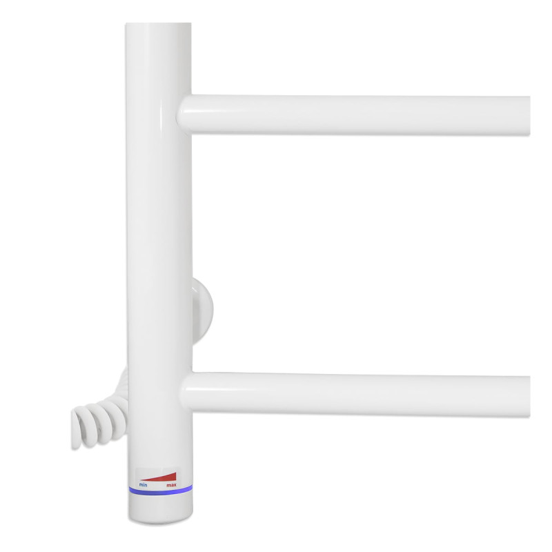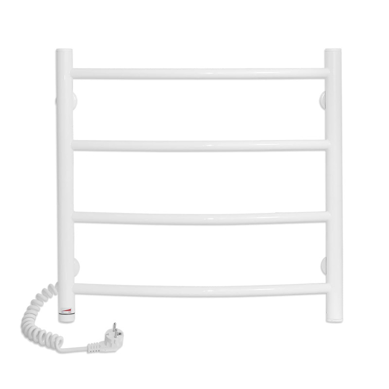 Колір покриття сушки для рушників - білий, що надає їй естетичний і сучасний зовнішній вигляд, і дозволяє легко поєднуватися з інтер'єром будь-якої ванної кімнати. Регулятор температури виконаний у вигляді крутилки, що робить керування рушникосушаркою простою й інтуїтивно зрозумілою. Ви можете легко регулювати температуру сушіння рушників залежно від ваших потреб та уподобань. Шнур підключення розташований зліва від сушарки для рушників, що забезпечує зручність підключення до електромережі. Кількість перемичок на цій моделі становить 4, що забезпечує достатньо місця для розміщення рушників. Таким чином, рушникосушарка може ефективно і швидко сушити рушники, роблячи їх завжди готовими до використання.