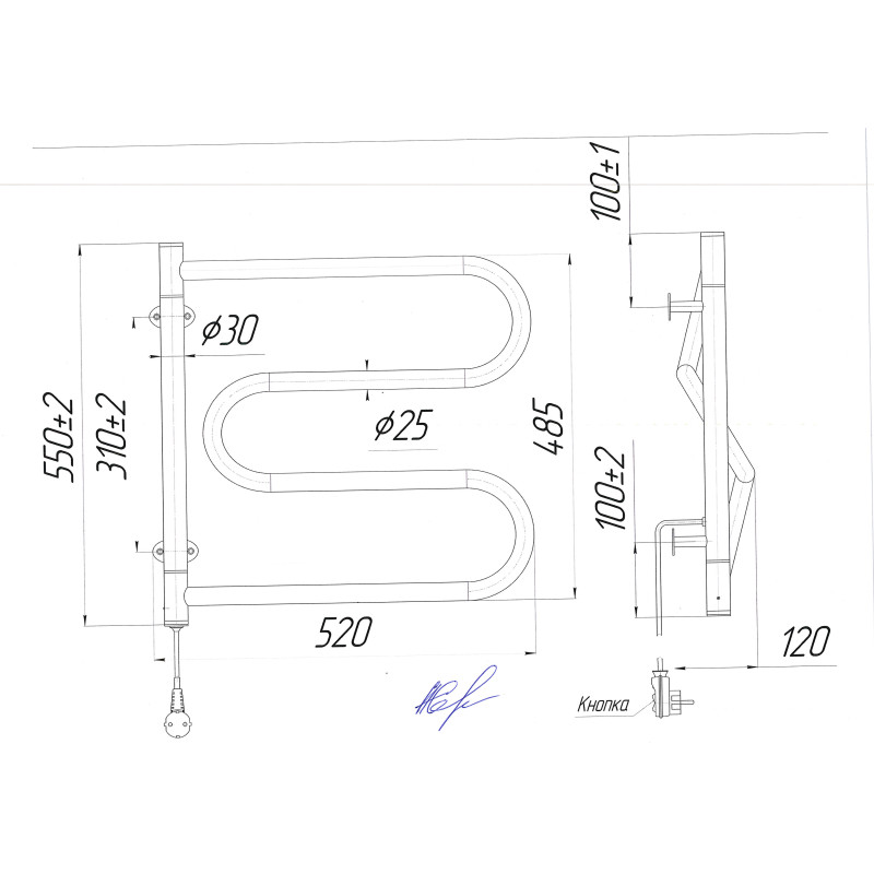 | Форма рушникосушки | Змійка/Поворотний |
