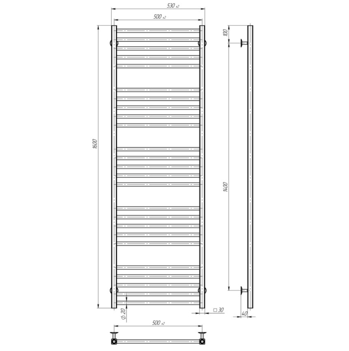 Водяна рушникосушарка Deffi Lima П25 500х1600 В бічне підключення