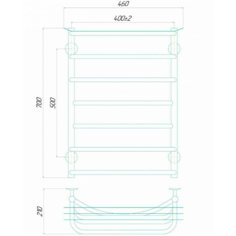 Сім перемичок дозволяють вам розмістити кілька рушників одночасно, створюючи зручне середовище у ванній. Потужність 85 Вт гарантує швидкий і рівномірний прогрів, створюючи комфортний клімат у ванній кімнаті. Глибина 210 мм і міжцентрова відстань 400 мм роблять її компактною й зручною для встановлення. Тип кріплення – стаціонарний, забезпечуючи міцне кріплення до стіни. Виготовлена з нержавіючої сталі марки AISI 304, ця рушникосушка витримує вплив вологи, забезпечуючи тривалий термін служби.