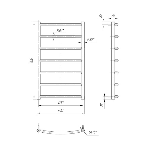 Водяна сушка для рушників Mario Класика Класік 700х430/400