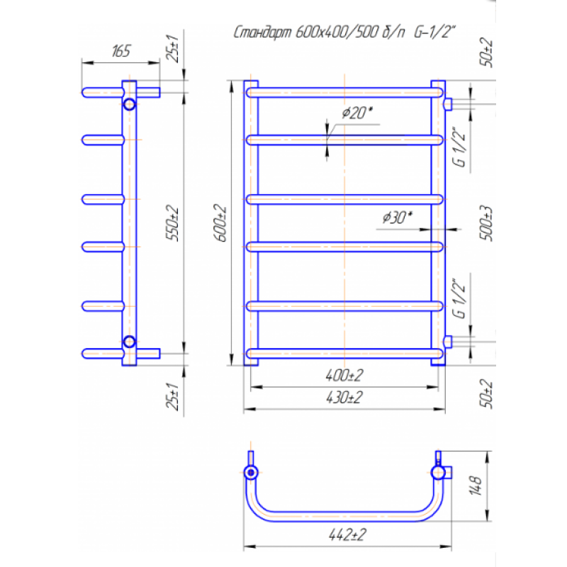 Mario Практик Стандарт Б/П 1/2" 600х450/500 - це не просто рушникосушка, це поєднання стилю і практичності, створене для сучасних інтер'єрів.