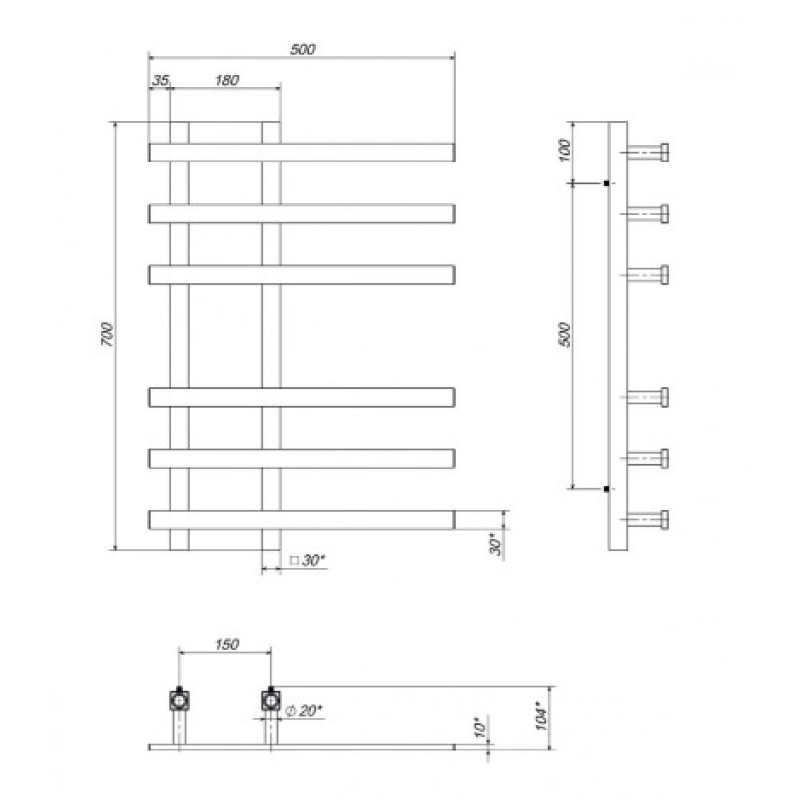 З урахуванням глибини 104 мм і міжцентрової відстані 150 мм, сушарка для рушників Deffi Atena П6 150x700 легко інтегрується в будь-який дизайн ванної кімнати і забезпечує ефективне сушіння рушників.