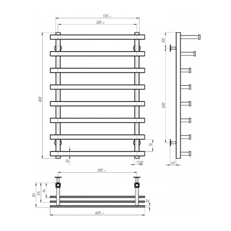 Водяна рушникосушарка Deffi Breeze П8 500x800 В нижнє підключення