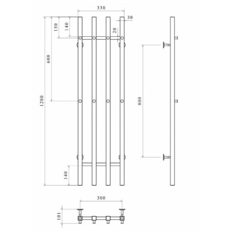 Водяна рушникосушарка Deffi Split П4 300x1200 В бічне підключення