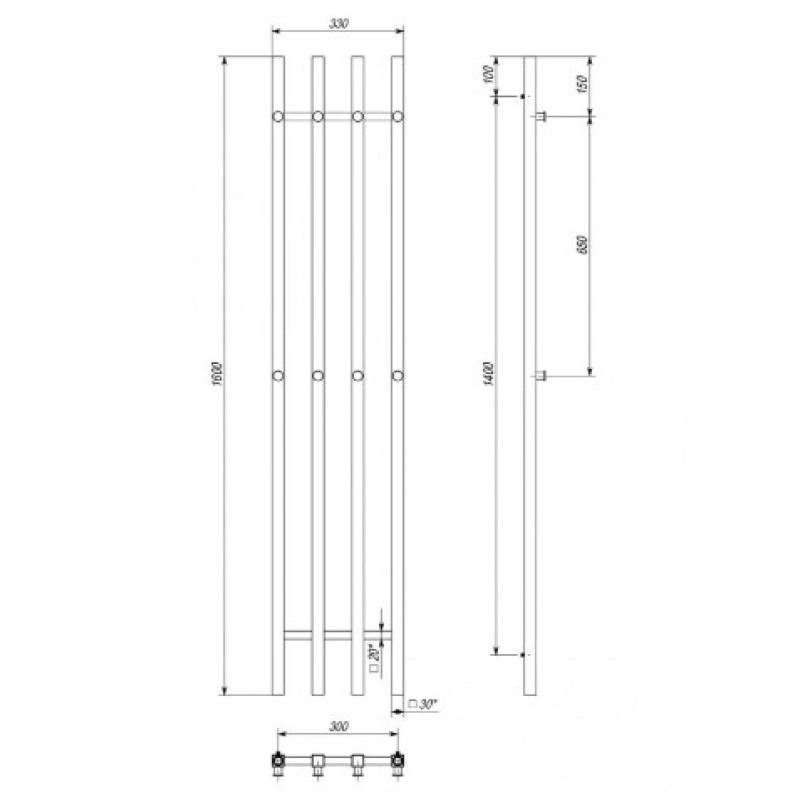 Водяна рушникосушарка Deffi Split П4 300x1600 В нижнє підключення