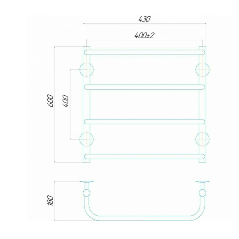 Висота цієї рушникосушарки становить 600 мм, а ширина - 400 мм, що робить її компактною та чудово підходить для невеликих ванних кімнат. Її глибина – 180 мм, що забезпечує надійне кріплення до стіни. Потужність пристрою становить 80 Вт, що забезпечує достатнє тепло для сушіння рушників та одягу.