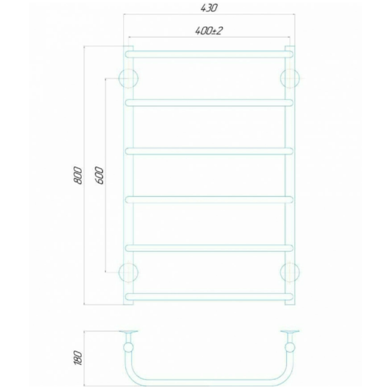 - Габарити та дизайн: висота становить 800 мм, а ширина 400 мм, що робить її компактною та зручною для встановлення у невеликих ванних кімнатах. Класична форма "Драбинка" надає їй стильного і сучасного вигляду, який легко поєднується з різними інтер'єрами.