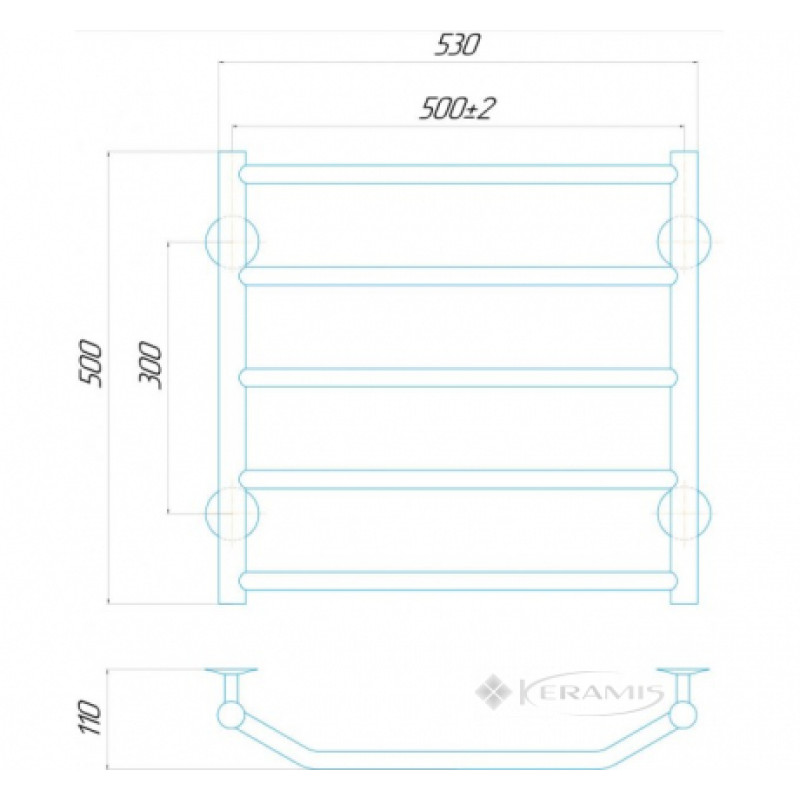 - Зручна міжцентрова відстань: міжцентрова відстань 500 мм забезпечує достатній простір для розміщення рушників різних розмірів, що робить цю рушникосушарку зручною для повсякденного використання.