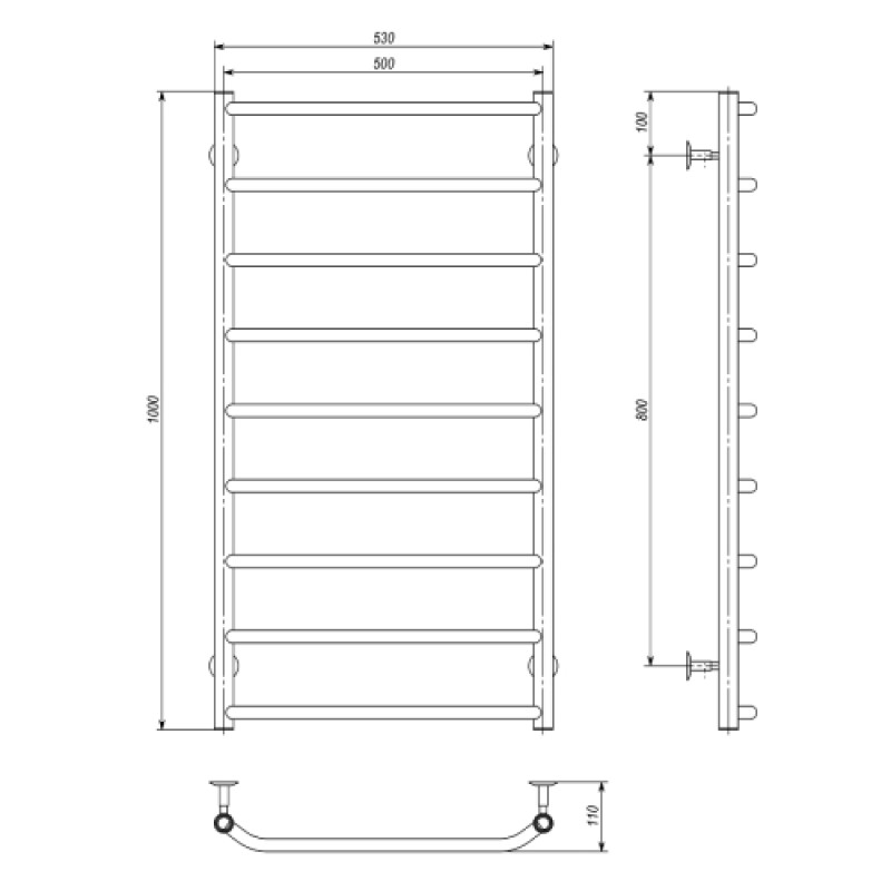 - Країна виробник: Україна – що гарантує відповідність високим стандартам якості. Розміри: висота 1000 мм, ширина 500 мм, глибина 110 мм. Ці компактні розміри дозволяють встановити рушникосушарку в невеликих ваннах, при цьому вона ефективно виконує свої функції.