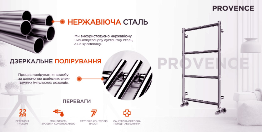 Особливості водяної рушникосушарки Mario Арт Дизайн Прованс 1000х542/500 (1.2.6301.03.P)