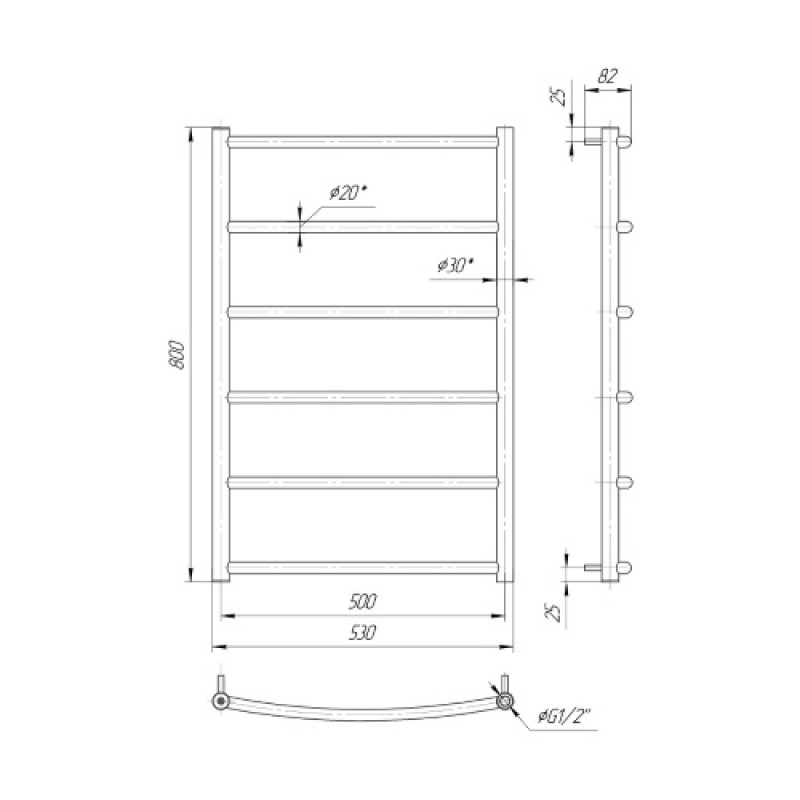 Ця модель є досконалим поєднанням функціональності і стилю, покликане перетворити вашу ванну кімнату в оазис затишку. З висотою 800 мм і шириною 530 мм, ця рушникосушарка легко вписується в інтер'єр різних ванних просторів. З 6 елегантними перемичками, розподіленими рівномірно, вам надається зручність для підвішування рушників та аксесуарів.
