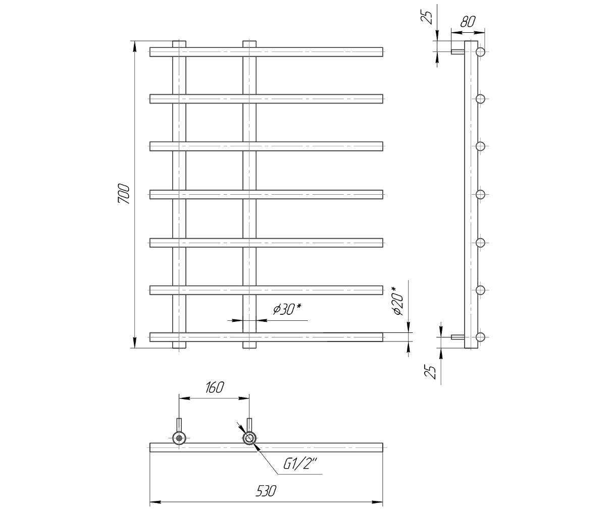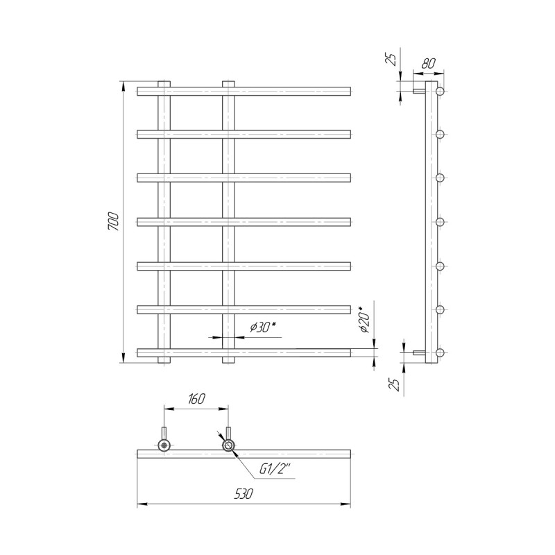 Водяна сушка для рушників Mario Класика Марсель 700х530/160