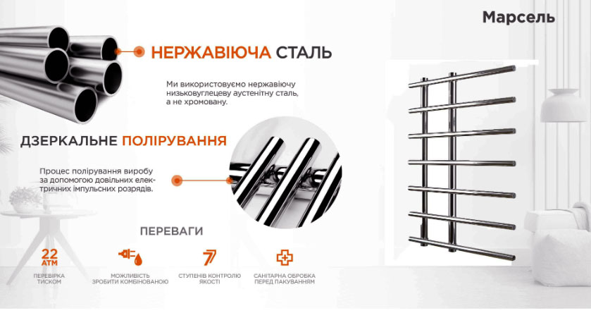 Ця рушникосушарка - не просто функціональне обладнання, але і частина декору вашої ванної кімнати, додаючи в неї вишуканості і тепла. Довірте свій комфорт Mario – створюйте затишок із найкращими рішеннями для вашого будинку.