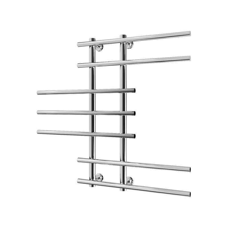 Однією з найвизначніших особливостей цієї моделі є унікальна конструкція горизонтальних накладних перемичок. Вони поділені на три блоки, кожен із яких розташований у шаховому порядку відносно один одного. Такий розподіл робить використання рушникосушки зручнішим і практичнішим. Ви зможете одночасно сушити кілька речей завдяки інноваційній системі розміщення ребер.