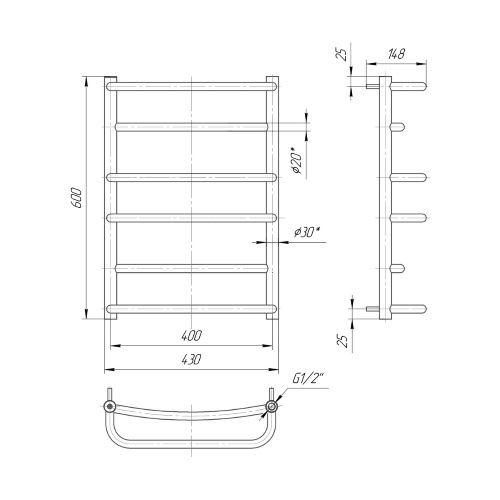 Водяна сушка для рушників Mario Практик Люкс 600х430/400