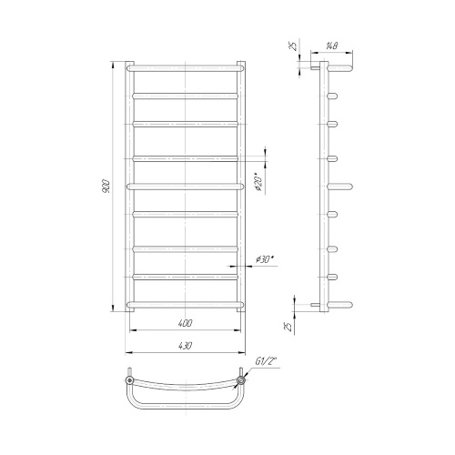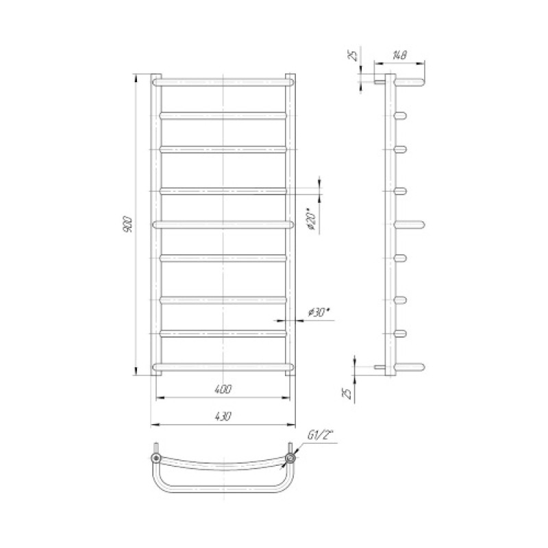 - Висота 900 мм і ширина 430 мм створюють елегантні пропорції, роблячи рушникосушарку не тільки функціональним, але і стильним елементом інтер'єру.