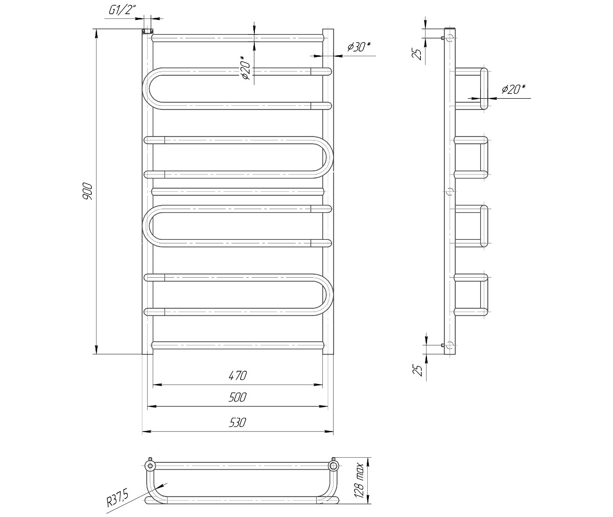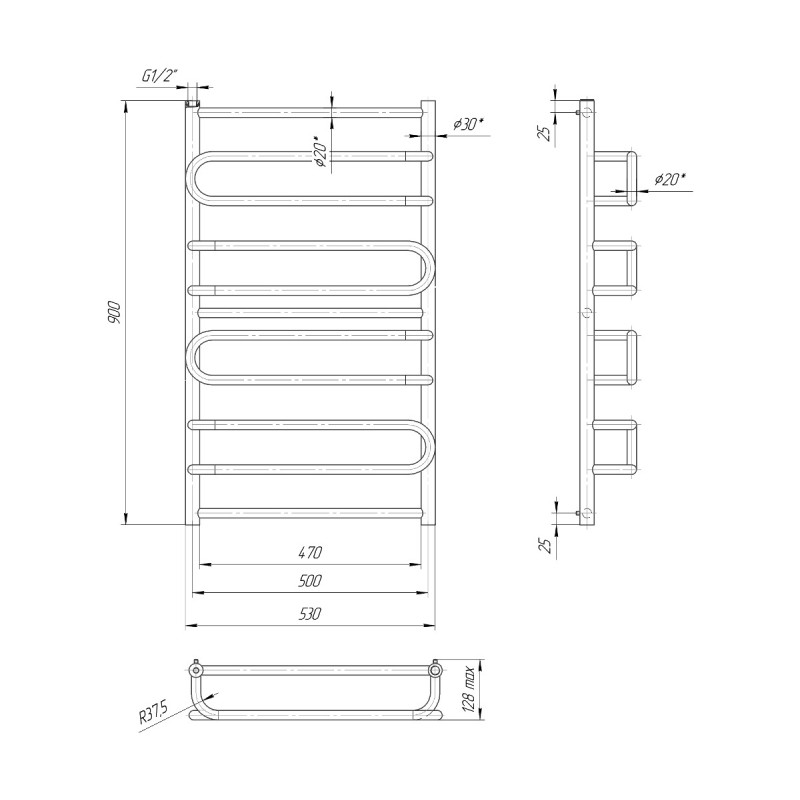 Водяна сушка для рушників Mario Практик Ніца 900х530/500