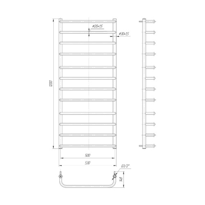 Водяна сушка для рушників Mario Практик Стандарт 1200х530/500